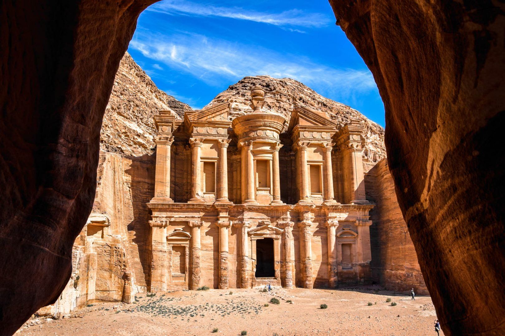 Step into the ancient world at Petra, Jordan’s crown jewel. Wander through the narrow Siq, then witness the iconic Treasury carved into rose-red cliffs. Stay until nightfall for the unforgettable sight of Petra illuminated by candles—a moment that feels like stepping into a legend.